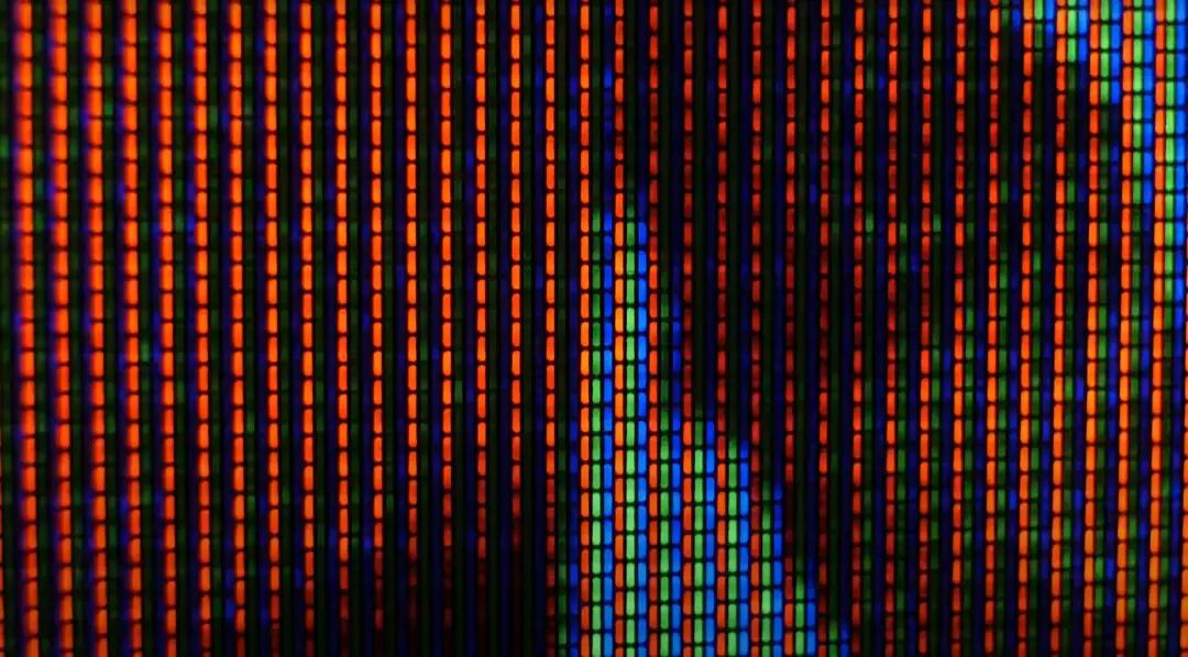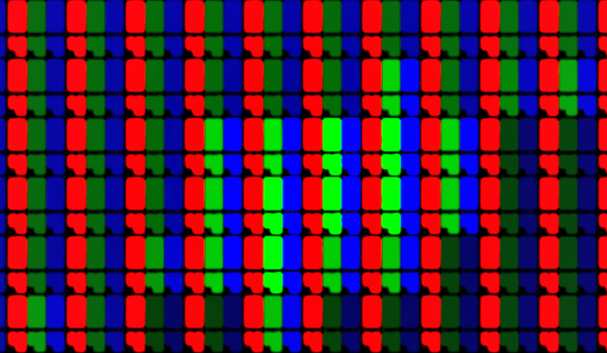 正如你现在正在使用的手机或电脑屏幕,当你用显微镜发大时你会发现,液晶面板其实是由一个个红色、蓝色、绿色的小点组成,三种颜色的小点即可组成一个像素,通过控制小点的亮度不同形成颜色从而构成图像。